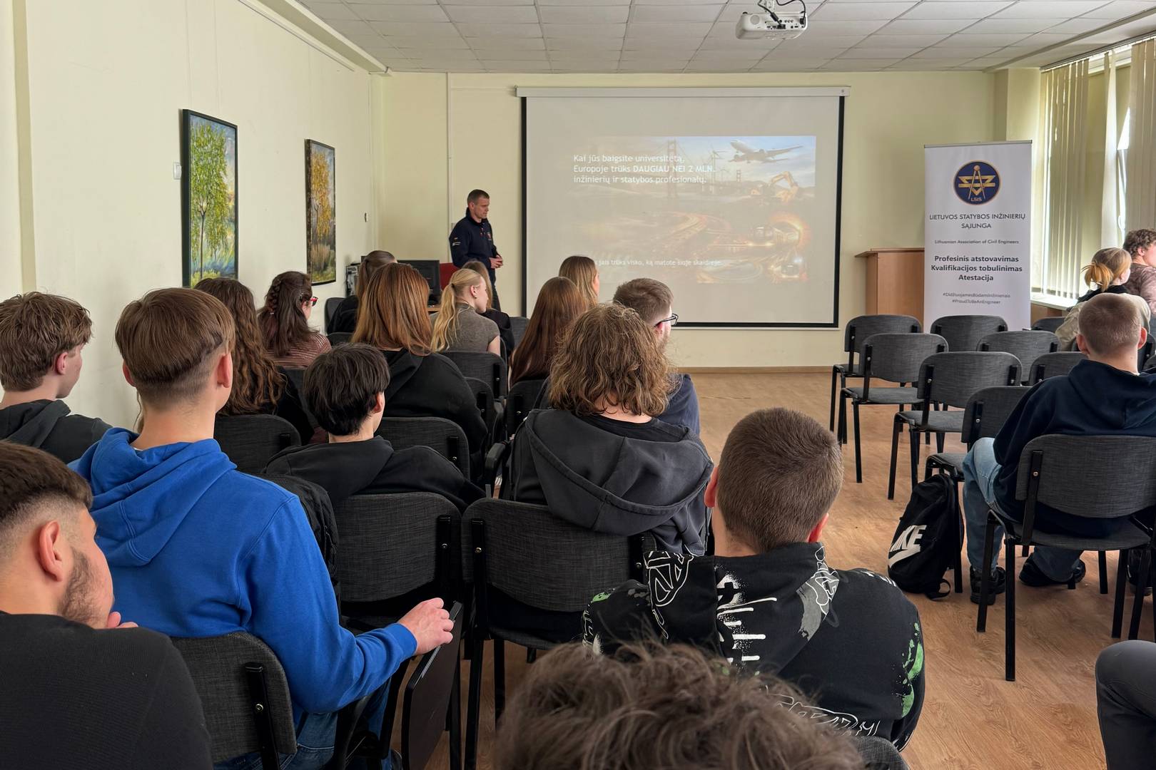Balandžio 13–17 dienomis Lietuvos mokyklose nuvilnijo „Inžinerijos savaitė“ – ambicinga statybos verslo, inžinierių ir švietimo bendruomenės iniciatyva. Šios savaitės tikslas – atverti duris į modernios inžinerijos pasaulį, supažindinti moksleivius su realiais projektais bei padėti suprasti, kokiomis galimybėmis pasižymi šiuolaikinė darbo rinka. Mūsų gimnazijai ši savaitė buvo ypatinga – sulaukėme svečio, kurio sėkmės istorija prasidėjo būtent čia. Savo žiniomis ir profesine patirtimi su mokiniais dalijosi Tomas Bazaras – buvęs Lieporių gimnazijos mokinys, šiuo metu sėkmingai dirbantis statybų techninės priežiūros srityje. Sugrįžimas į savo mokyklą inžinieriui tapo puikia proga parodyti, kaip mokykloje įgytos žinios transformuojasi į atsakingą ir kūrybišką darbą. T. Bazaras ne tik pristatė inžinerinių profesijų spektrą, bet ir akcentavo, kad inžinerija nėra vien sausi skaičiavimai – tai nuolatinis problemų sprendimas ir ateities kūrimas. „Inžinieriai ir specialistai yra tie nematomi architektai, kurie kuria mūsų miestus, transporto sistemas ir energetikos sprendimus. Tai profesija, kuri tiesiogiai formuoja mūsų kasdienį gyvenimą,“ – susitikimo metu pabrėžė svečias. Pagrindinis šio susitikimo tikslas buvo ne tik suteikti informaciją, bet ir pažadinti mokinių smalsumą. Tikime, kad gyvas pavyzdys ir nuoširdus pokalbis su profesionalu padės mūsų gimnazistams drąsiau žvalgytis į inžinerinių studijų pusę. Praktinė patirtis rodo, kad inžinerija gali tapti ne tik darbu, bet ir prasmingu gyvenimo keliu tiems, kurie nori palikti ryškų pėdsaką rytojaus pasaulyje. Dėkojame Tomui Bazarui už įkvepiantį vizitą ir tikimės, kad kai kurie iš šiandieninių klausytojų po kelerių metų grįš į gimnaziją jau kaip jaunieji inžinerijos ekspertai!