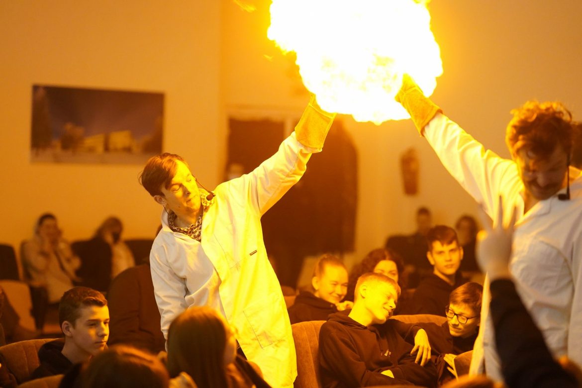 Lazeriai, eksperimentai, sprogimai ir kelionė laiku – spektaklis „Eureka! PLIUS”.